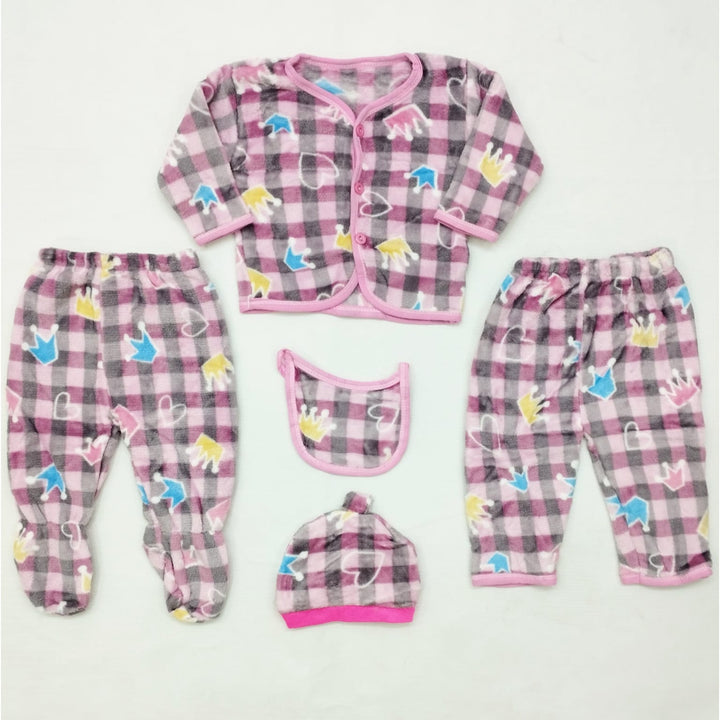 5 pieces Baby suit set for winter Size : 0 to 3 Months Shirt, two trousers, bib, cap stuff: Fleece