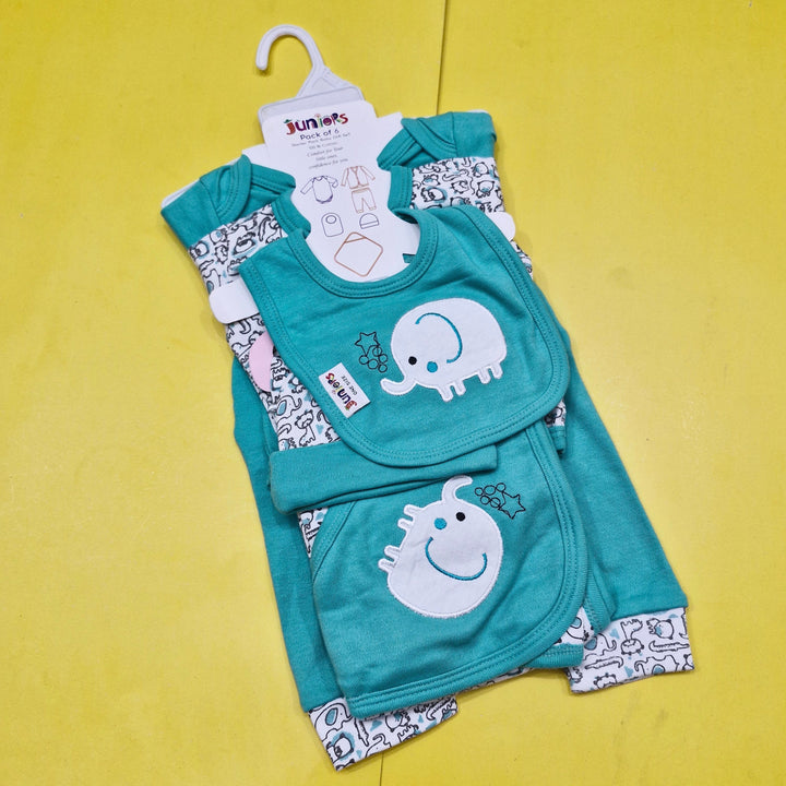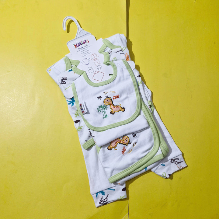 - Contains Full sleeves T-shirt , Trouser, Bib, Wrapping Sheet, cap, body suit full sleeves.