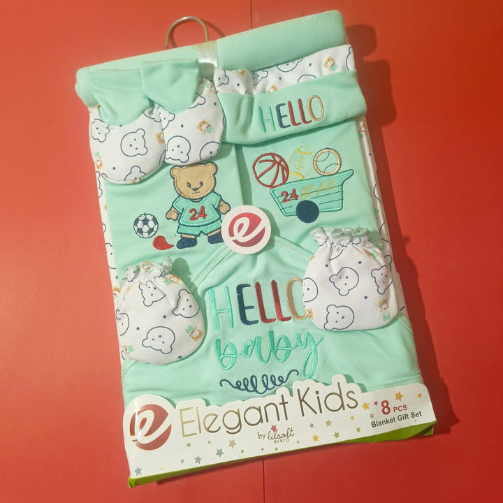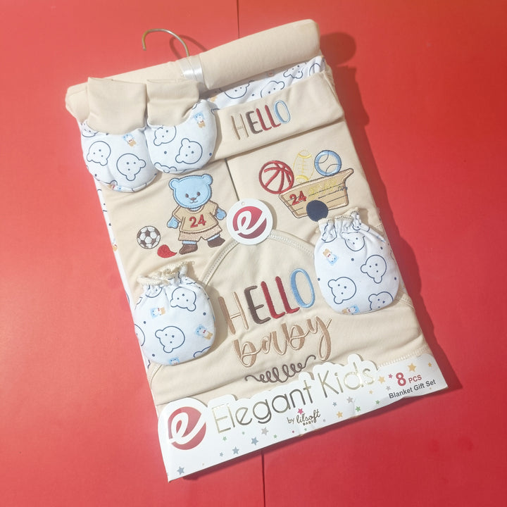 Shirt, trouser, bib, mittens, cap , booties, , wrapping sheet ,hangerSize: new bornStuff: blended