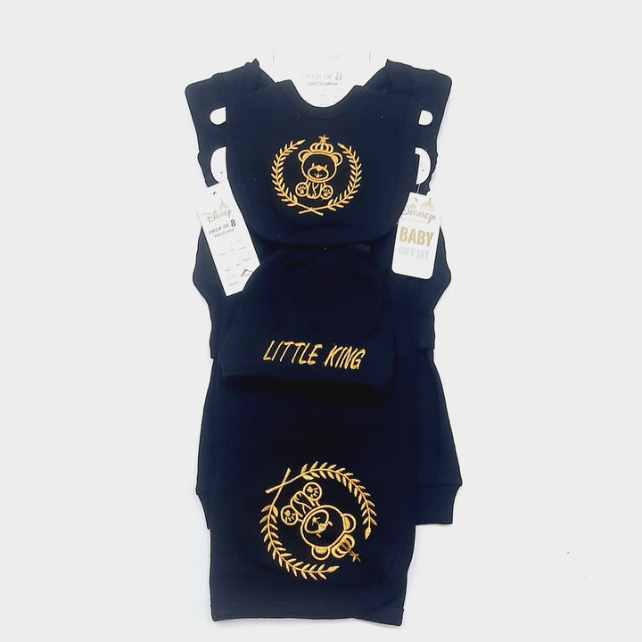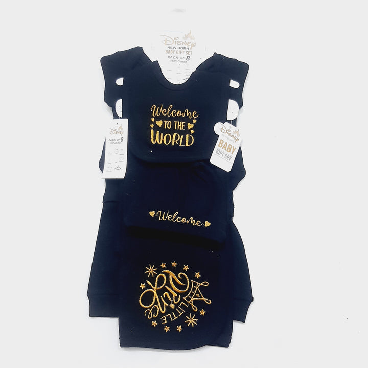 Contains : Full Sleeves T-Shirt, Trouser, Bib, Cap, Pair of Booties, Pair of Mittens, Hooded Wrapping Sheet & Hanger