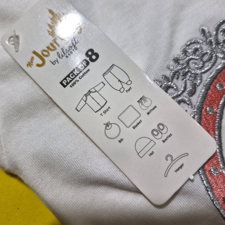 Starter set for your precious baby. Stuff - blended Contains Full sleeves T-shirt , Trouser, Bib, Wrapping Sheet, Cap, Booties, mittens & Hanger Age suitability- 0 to 3 months Soft fabric ...