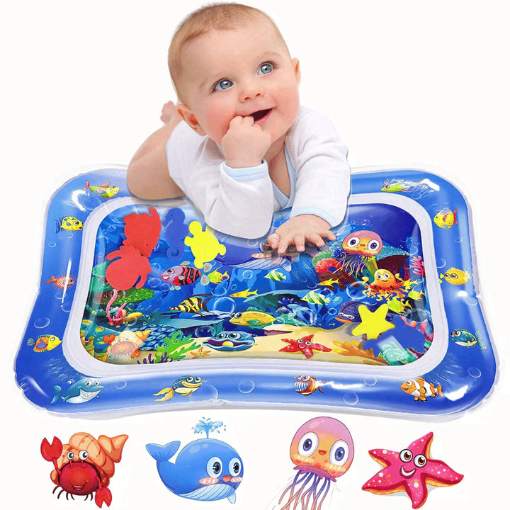 - Simply fill the baby inflatable pad's edge with the central play mat with water, set it on the floor and let the fun begin! It folds easily when empty into your purse or toy bag to bring along anywhere you go.