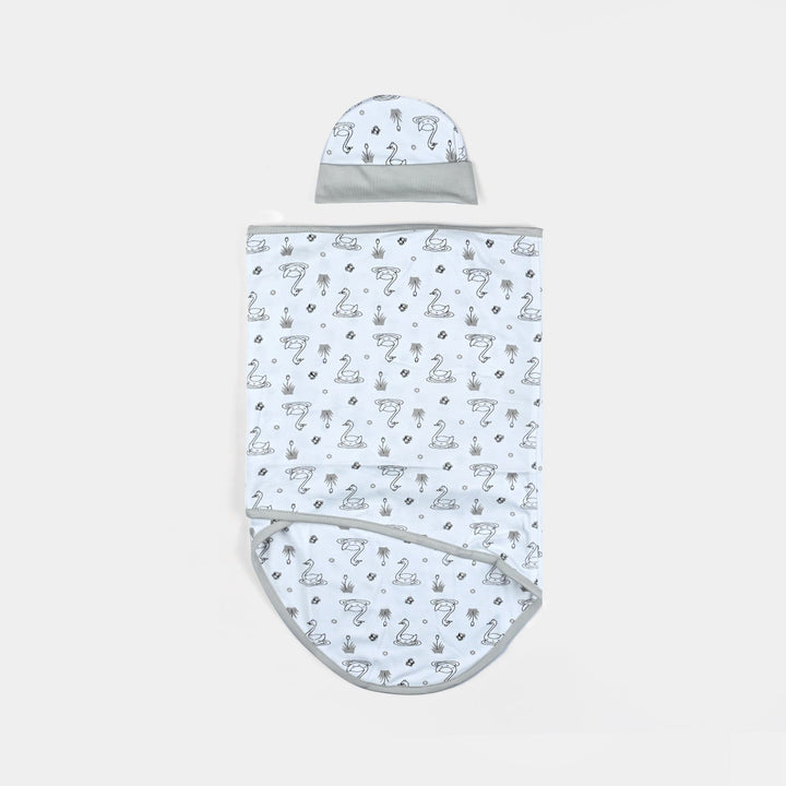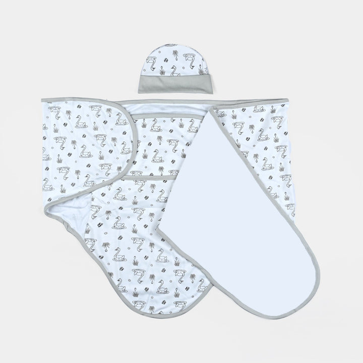 This set includes a baby swaddle and a cap, designed to provide comfort and security for your little one, mimicking the warmth of a mother’s embrace. It is made in soft, breathable fabric to keep them cozy and content throughout their early months!