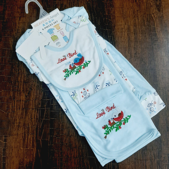 - Contains Full sleeves shirt, Trousers, wrapping sheet, body suit, bib, cap