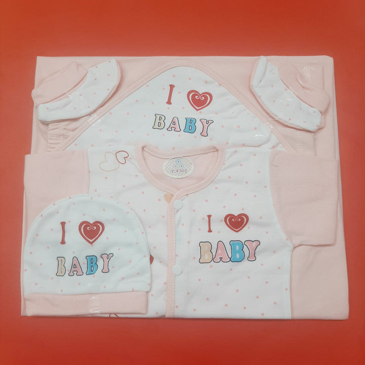 soft cottry Five pieces set. Size : 0 to 3 Months Shirt, touser, booties, cap, wrapping sheet stuff: soft cottry
