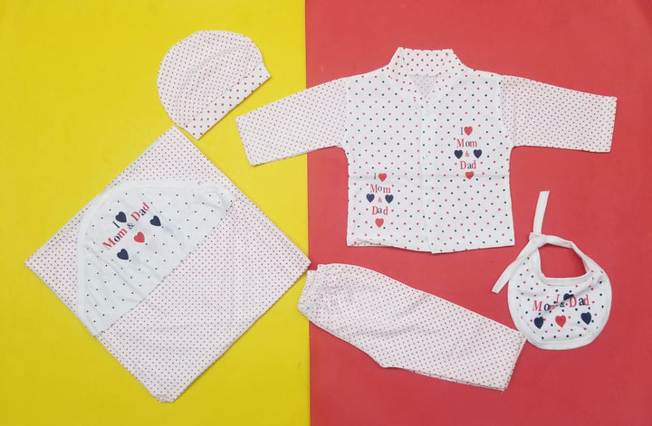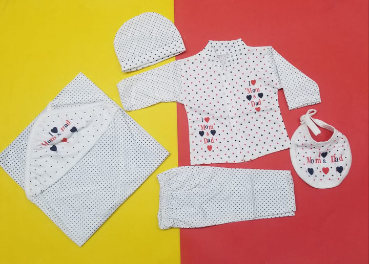 soft blended stuff Five pieces set. Size : 0 to 3 Months Shirt, touser, bib, cap, wrapping sheet stuff: soft blended