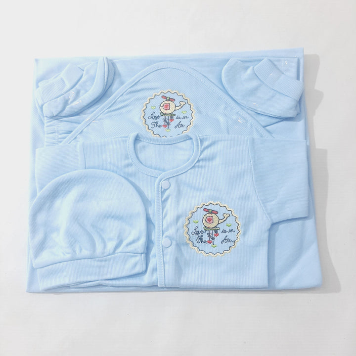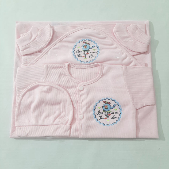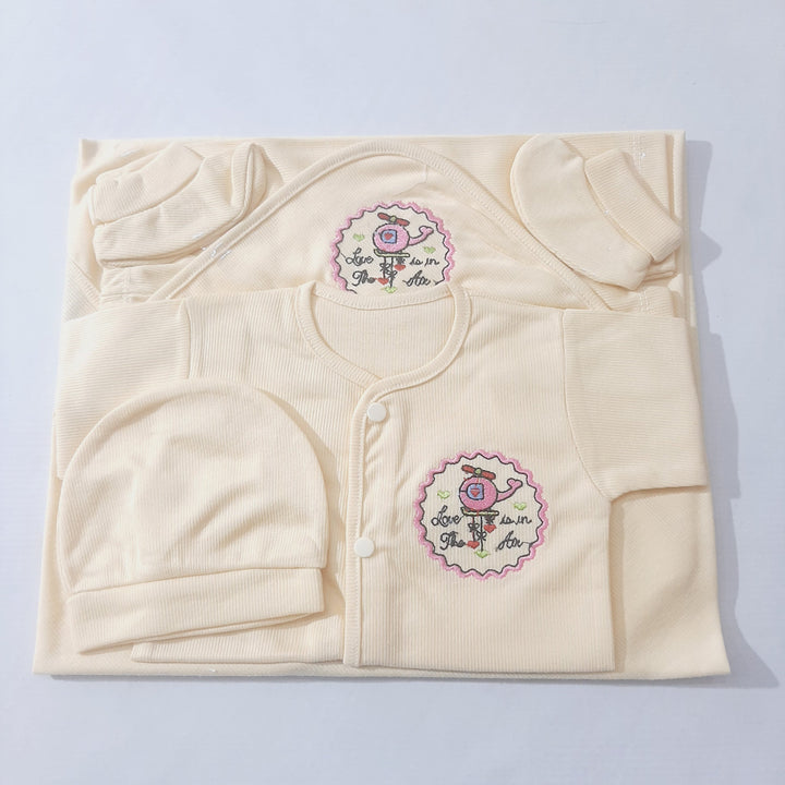 soft cottry Five pieces set. Size : 0 to 3 Months Shirt, touser, booties, cap, wrapping sheet stuff: soft cottry