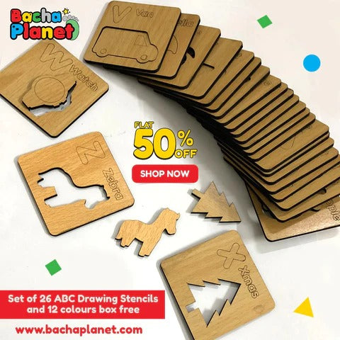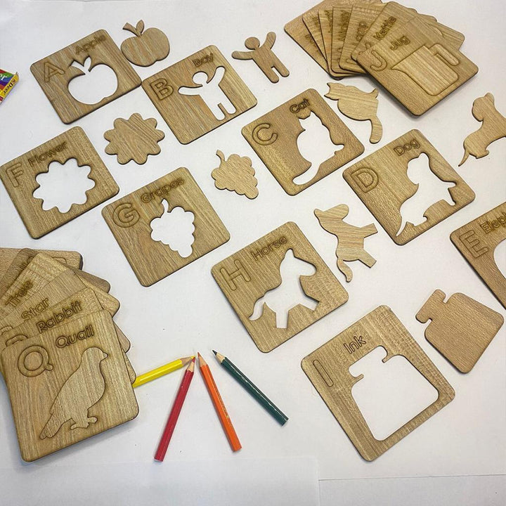Kids Wooden Alphabet Drawing Stencils