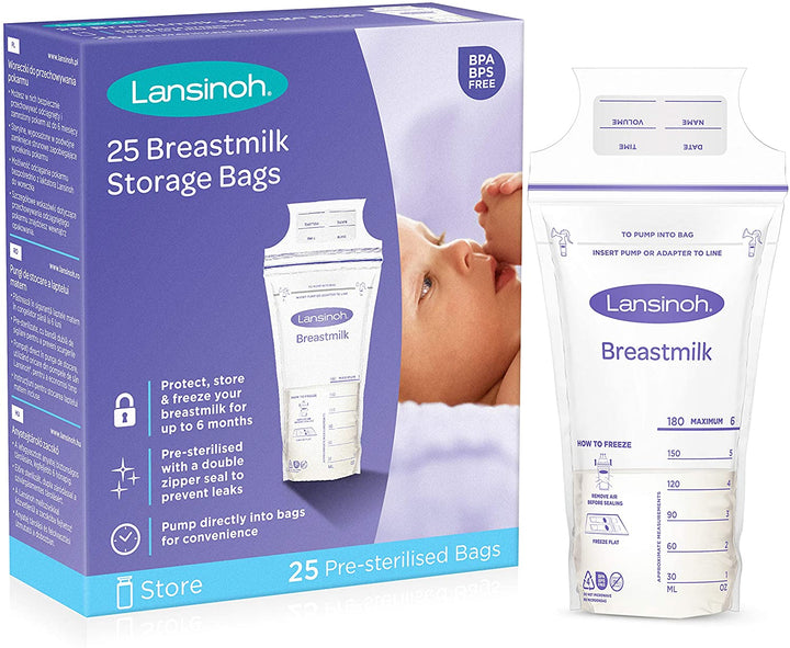 Lansinoh Breastmilk Storage Bags have been developed specifically for the freezer, and when stored flat, take up less space and defrost quicker.The Lansinoh Breastmilk Storage Bags make storing, warming and transporting your breastmilk easy and convenient for you. Reinforced side seams with double zipper seal to ensure no loss of breastmilk. Each bag had a tab above the fill area to eliminate potential puncture of the bag.