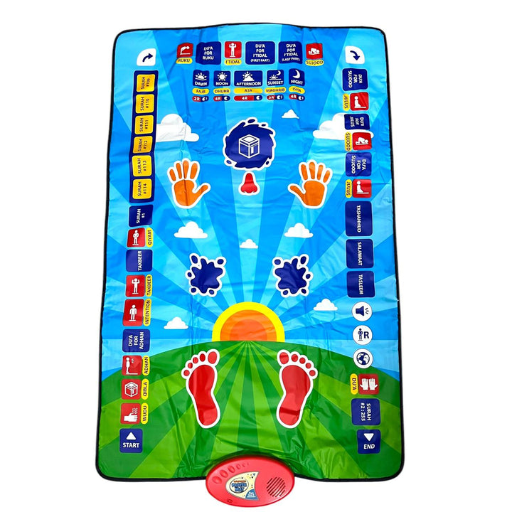 The Educational Prayer Mat is a cell-operated, multilingual, and interactive prayer mat that helps children learn Salah in a fun, engaging, and educational way.