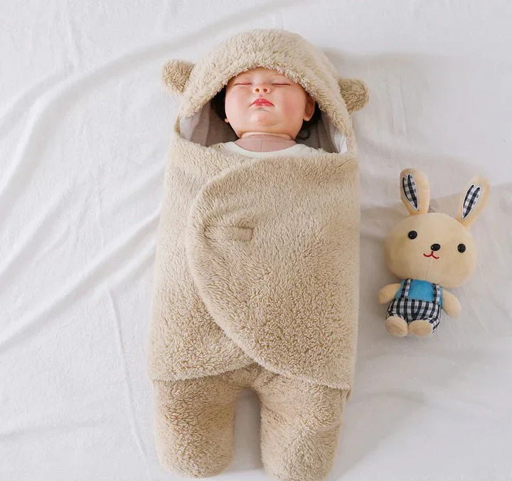 - Unique Design Our baby blanket has two wings that can wrap around your baby's body. You can adjust it to make it a tight or loose sword for your baby to feel comfortable. With separate feet design, babies can move their legs freely. The cute design of the bear cap makes your little baby so cute.